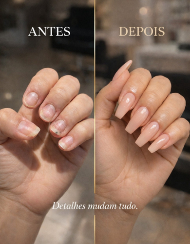 Trabalhamos com técnicas avançadas, materiais de alta durabilidade e uma paleta diversificada de cores e estilos. O acabamento é impecável, com brilho intenso e resistência prolongada. Perfeito para quem quer aliar beleza, modernidade e cuidado com as mãos.